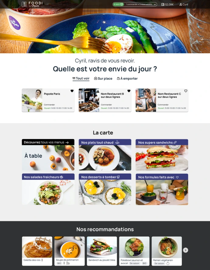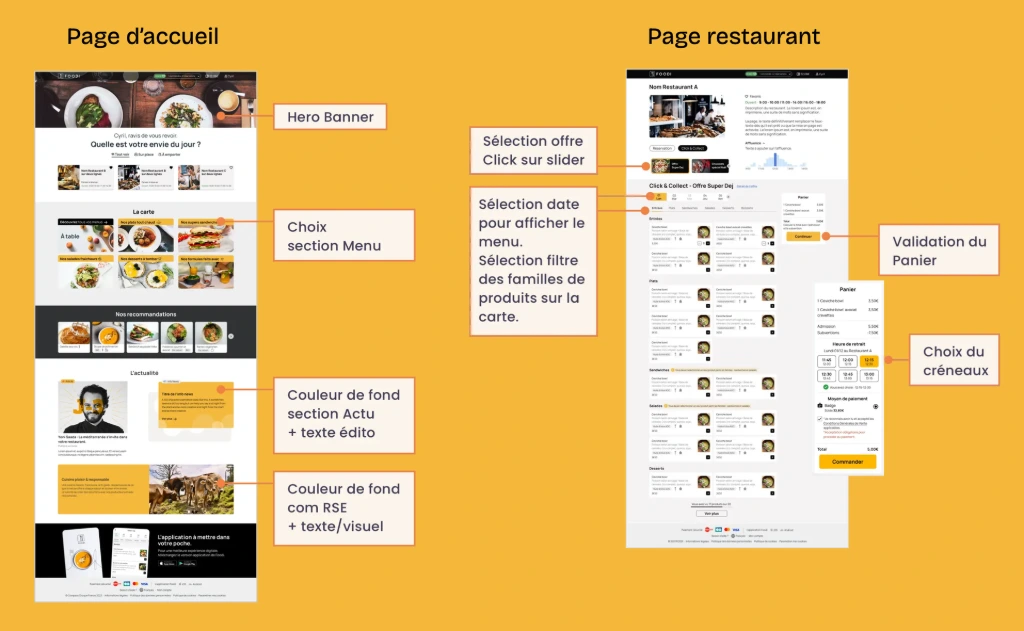 Retravail des parcours UX et de l’univers graphique de Foodi.