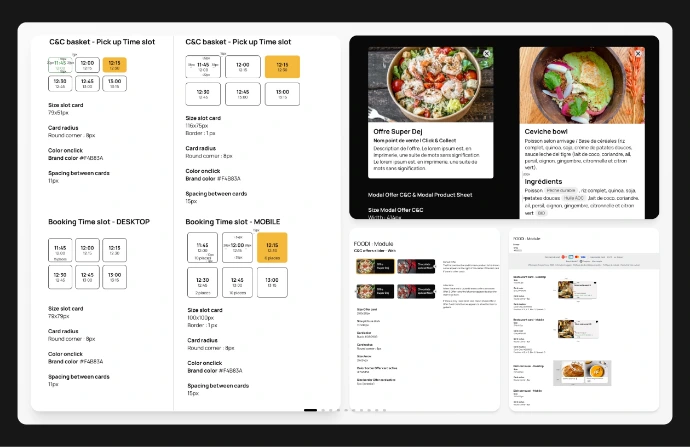 Des templates d'écrans ont également été créés pour illustrer l'assemblage des composants selon les cas d'usage, accélérant le développement.