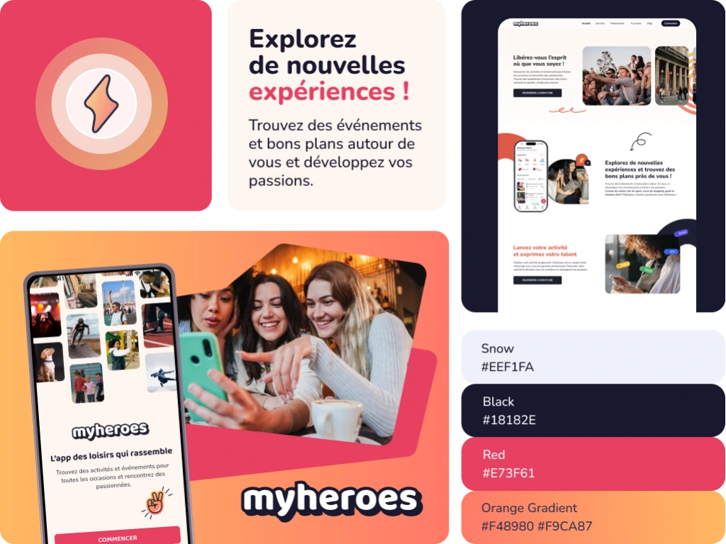 Logo, couleurs, typographie reflètent l'esprit accessible et dynamique de la plateforme. Un UI kit a été mis en place pour garantir la cohérence entre l'application mobile et le site web.